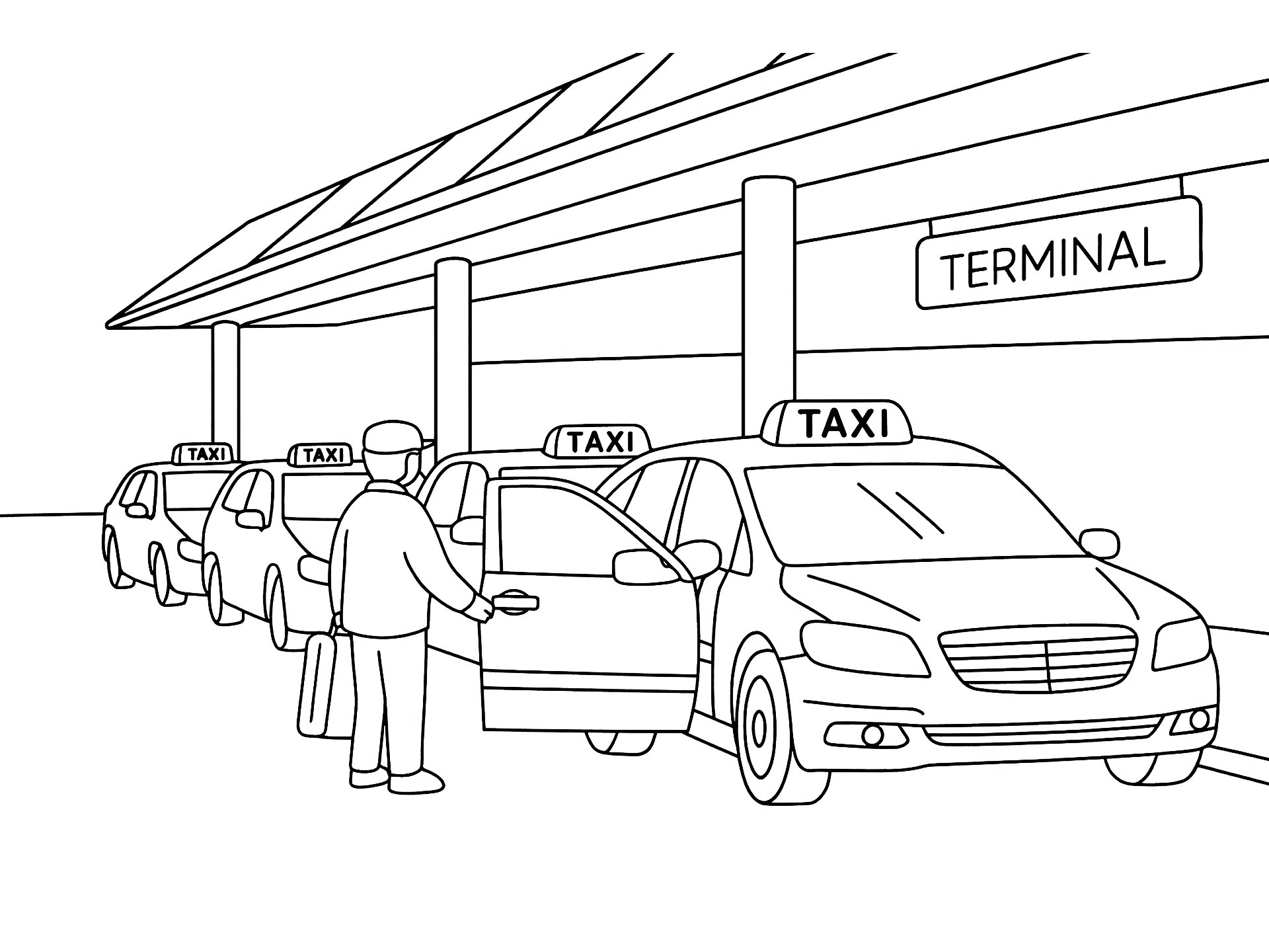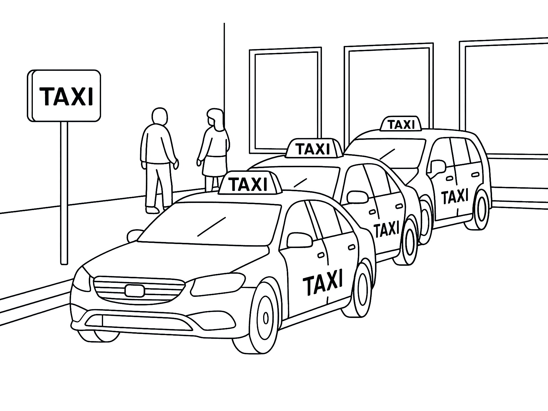 Taxis gehören zu den bekanntesten Fahrzeugen im Straßenverkehr. In manchen Ländern sind sie leuchtend gelb, in anderen schwarz oder bunt bemalt. Sie fahren durch große Städte, stehen an Bahnhöfen bereit und bringen Fahrgäste sicher an ihr Ziel. Unsere kostenlosen Ausmalbilder laden dazu ein, diese spannenden Fahrzeuge nach den eigenen Vorstellungen zu gestalten.